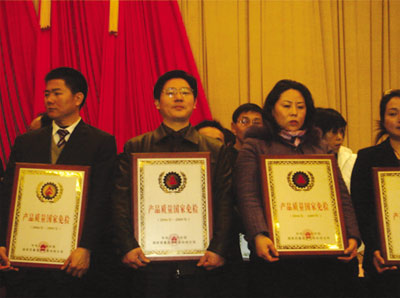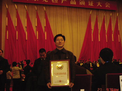 2006年公司获得国家免检产品称号,作为江苏省唯一获得此殊荣的砖瓦机械厂家,该称号的获得不仅是政府对公司产品质量的认可,也是客户对公司产品质量的信赖,更是对公司长期以来坚持“科技兴企、质量先行”宗旨的理想回报。下图是公司董事长崔恒全同志在北京人民大会堂领奖时的精彩瞬间。